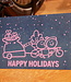 We've got two designs, the first one being a navy and fluorescent pink that just can't be captured on camera, featuring our pals on bikes sharing their triple tandem chariot with a bike trailer full of holiday goodies, and "Happy Holidays" along the bottom. The second card is a snowy scene of a bike afore a cozy cottage in the woods, with "Season's Greetings" along the bottom in a cross-stitch blackletter typeface. No matter who's in your cycling crew, we've got something that will bring a smile to their wind-chapped faces!