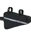 The triangular Frame Bag L, with a 1.7 litre capacity, securely stores tools, a mini pump, energy bars and a windbreaker. It features a small interior mesh pocket and a slim outer zipper pocket for convenient organization of small items. This frame bag is easily attached between the top tube and seat tube with 3 Velcro straps and comes with an all-around reflective print for increased visibility.